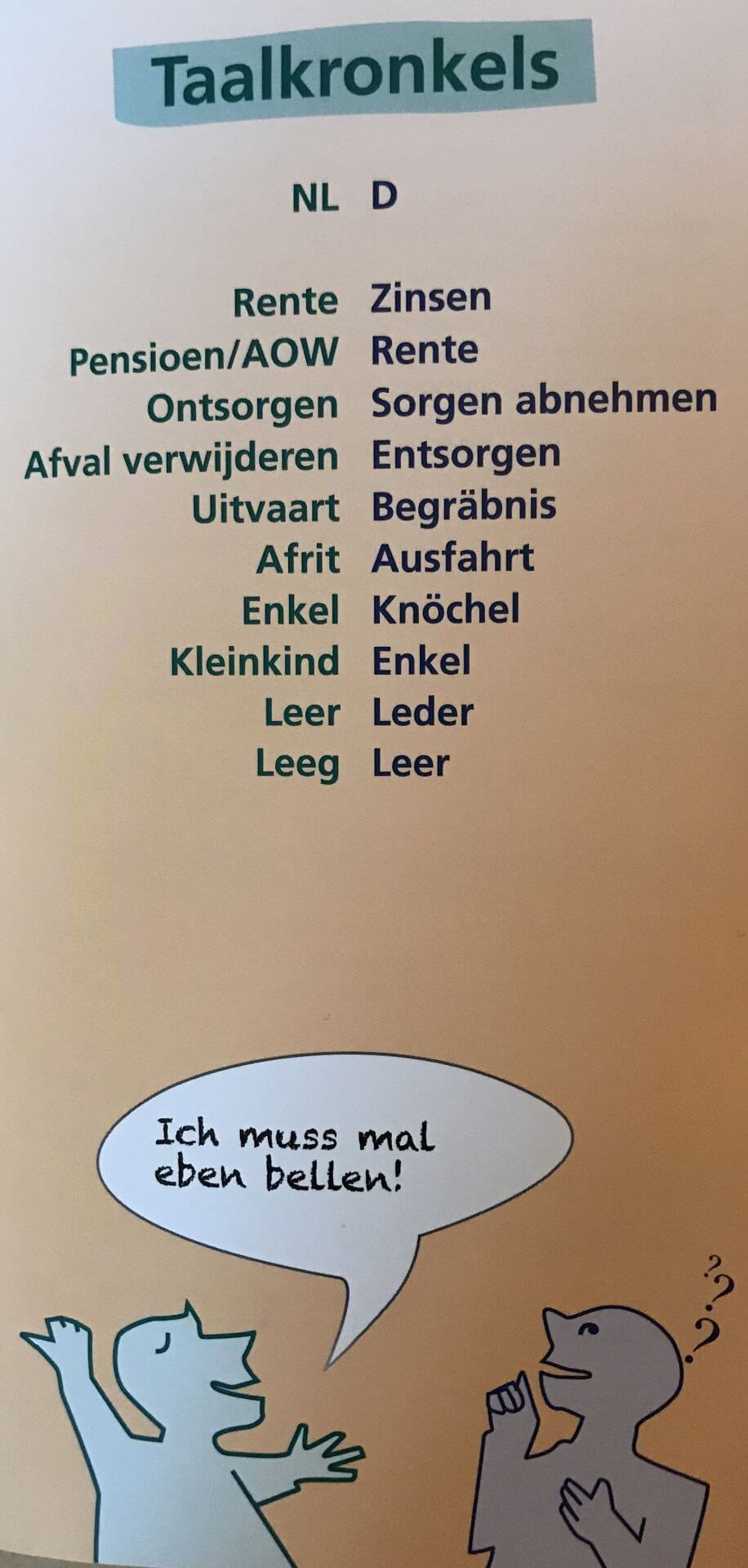 Beachten Sie bitte auch die sogenannten „Falschen Freunde“, also Wörter, die in beiden Sprachen existieren aber nicht selten eine andere Bedeutung haben.