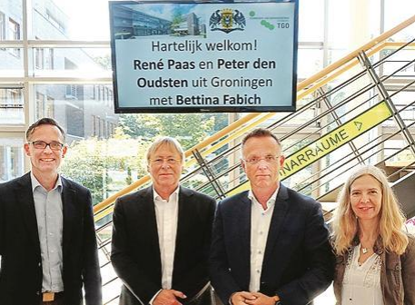 Der „Kommissar des Königs“ und der Bürgermeister der Stadt Groningen, Peter den Oudsten, trafen sich mit Oberbürgermeister Jürgen Krogmann, sie besuchten einen Kurs für Verwaltung und Politik in Deutschland bei „Deutsch nederlands plus“ (Denies) und besichtigten das Technologie- und Gründerzentrum.